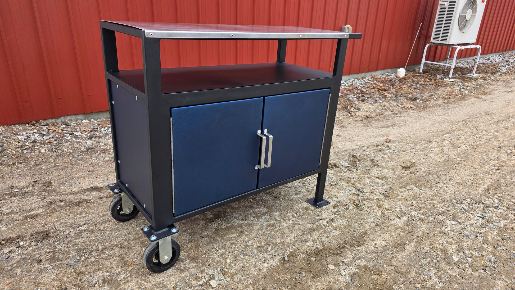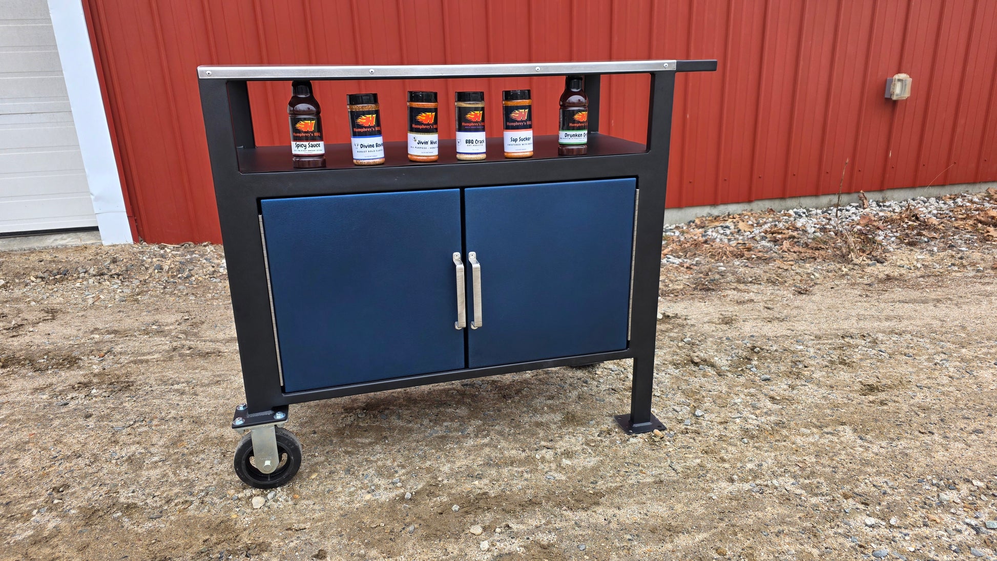 The panels shown here feature a bold textured cobalt blue finish, but you can customize your Brisket Bench to match your setup. It’s also available in textured red, textured black, textured emerald green, orange, and silver, giving you the flexibility to bring your own style to the pit.
