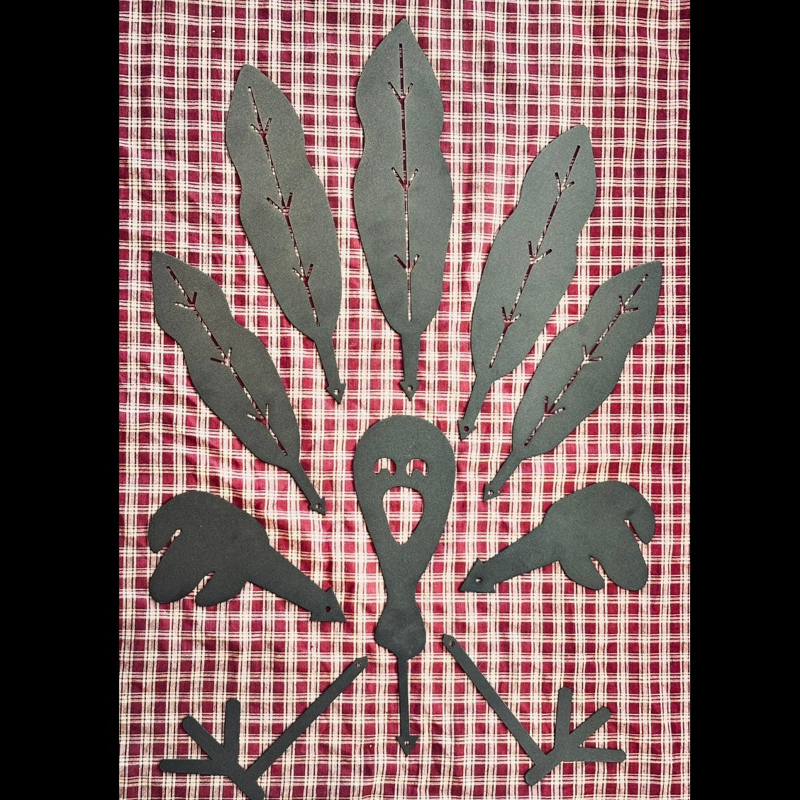 Our Pumpkin Turkey Decoration Kit includes steel pieces—a turkey head, wings, feet, and tail feathers—that easily stab into your pumpkin to create a fun and creative turkey display. Each piece is crafted from durable steel and powder coated in a textured black finish for a sleek, long-lasting look that stands up beautifully indoors or out.