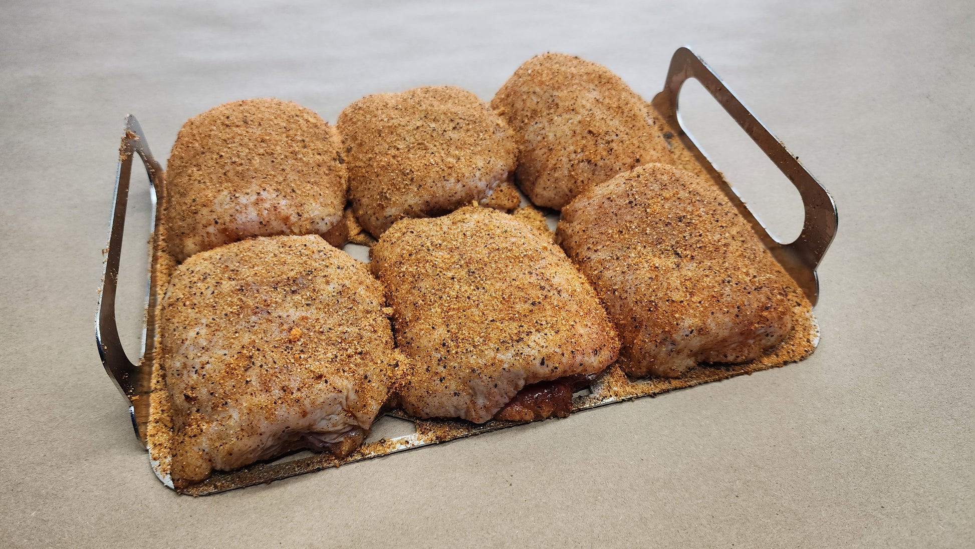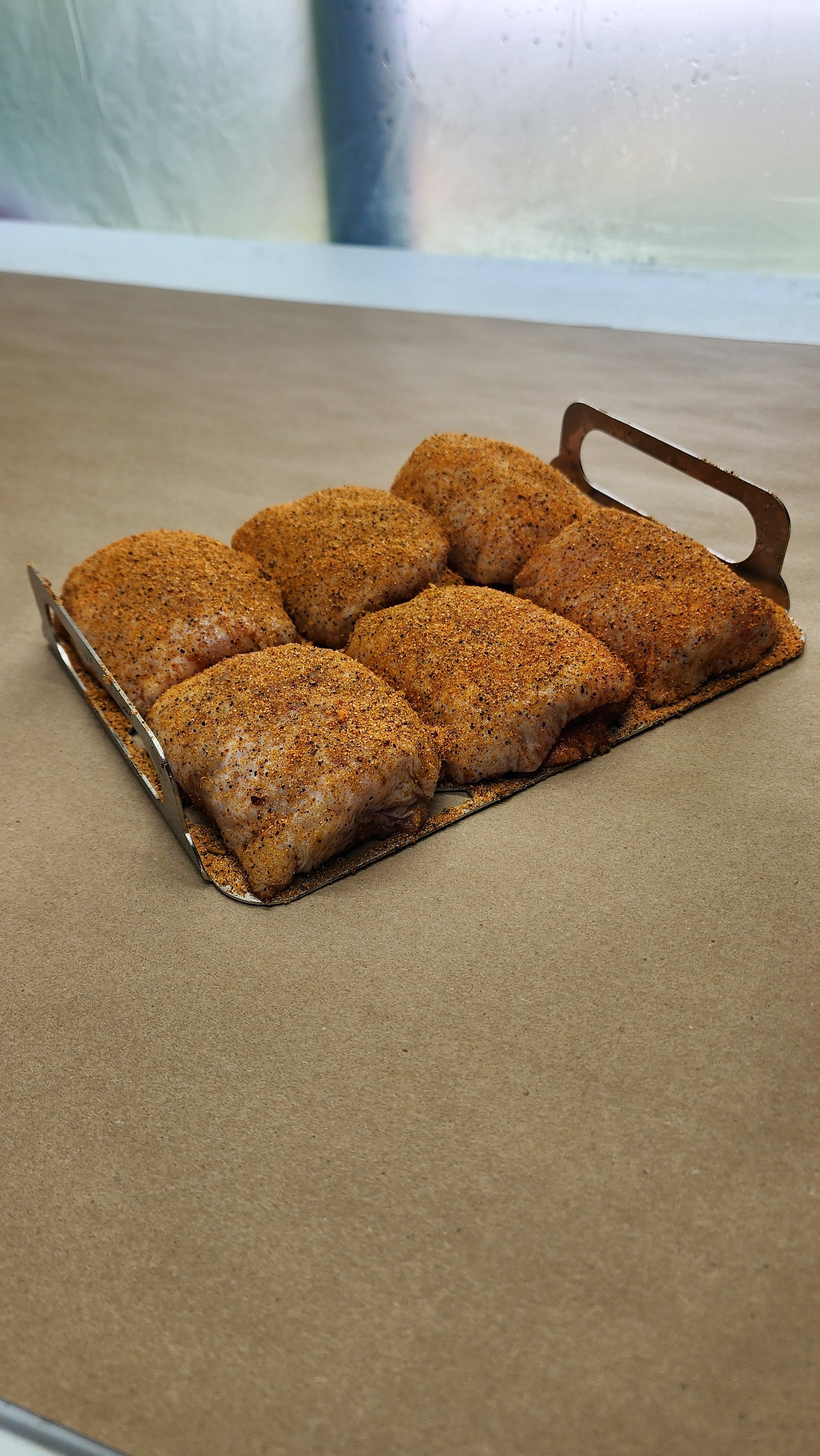 The Chicken Sled is the ultimate tool for serious BBQ competitors and backyard pitmasters alike. Crafted from durable, food-grade stainless steel, this innovative tool is designed to let you move chicken legs or thighs effortlessly from the prep pan to the braise to the sauce—without ever touching the meat. That means no more disturbing your carefully applied rubs or perfectly lacquered sauces.